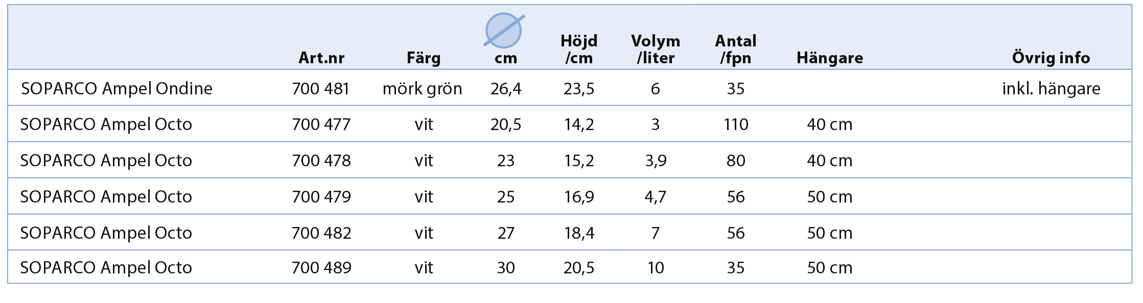 Hängare 50 cm medföljer Diameter: 25 cm Höjd: 15,2 cm Volym: 4,7 liter Antal/fpn: 56 st Material: 40% återvunnen PP-plast, 100 % återvinnin … Läs mer