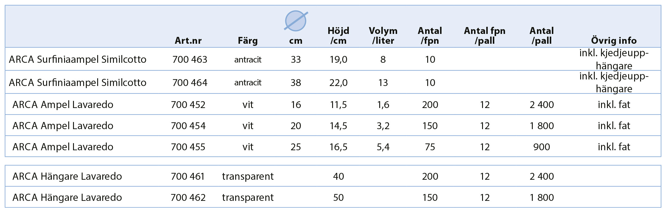 Hängare ingår ej Diameter: 25 cm Höjd: 16,5 cm Volym: 5,4 liter Antal/fpn: 75 st Antal fpn/pall: 12 st Antal amplar/pall: 900 st Ink. fat Läs mer